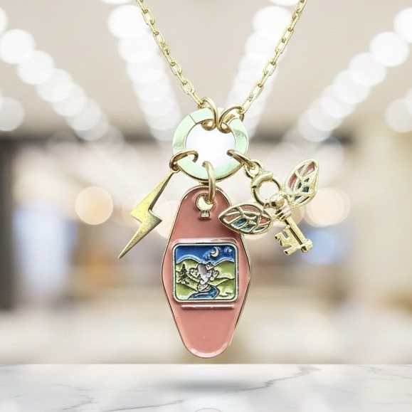 Wizards Train. Genuine 14k gold-filled center ring and side charms, paired with a solid 925 sterling silver chain in matching rich 14k gold finish and a hand-enamelled center charm in rich 14k gold finish (nickel-free). Sealed throughout for enduring radiance.